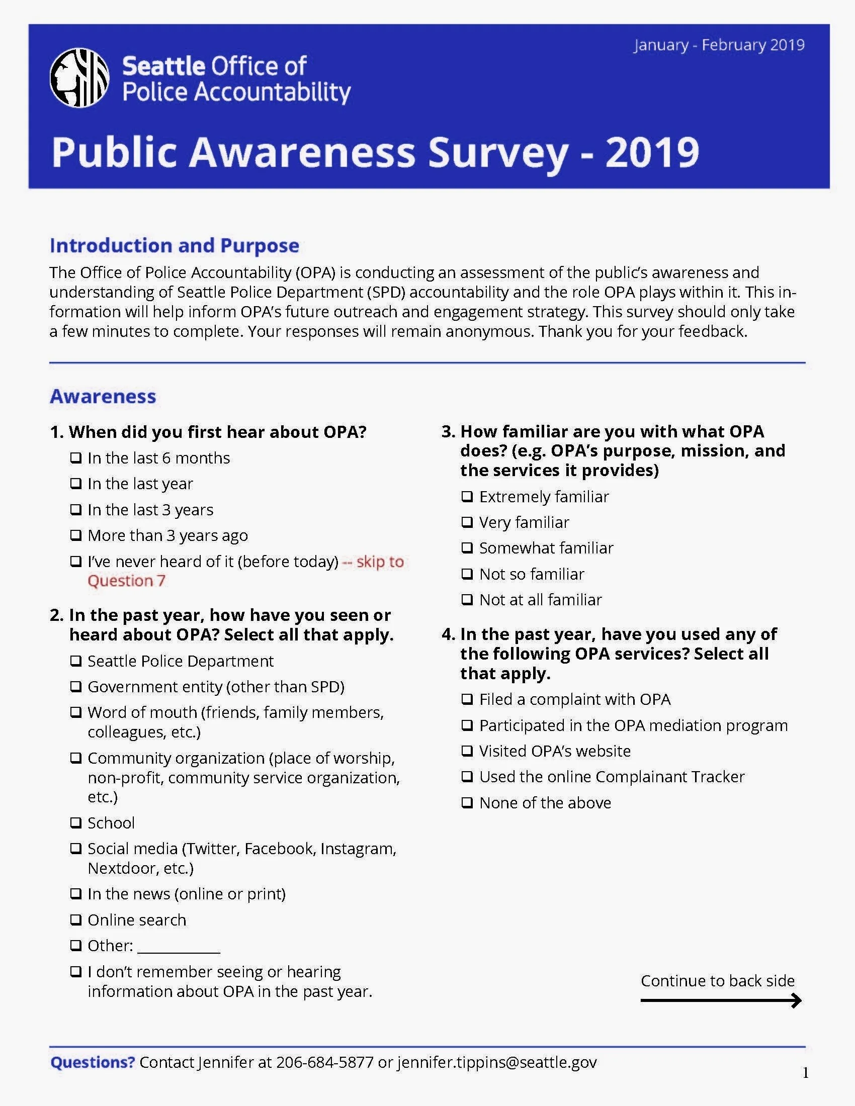 What is the public’s current understanding, attitudes, and perceptions of OPA and police accountability?