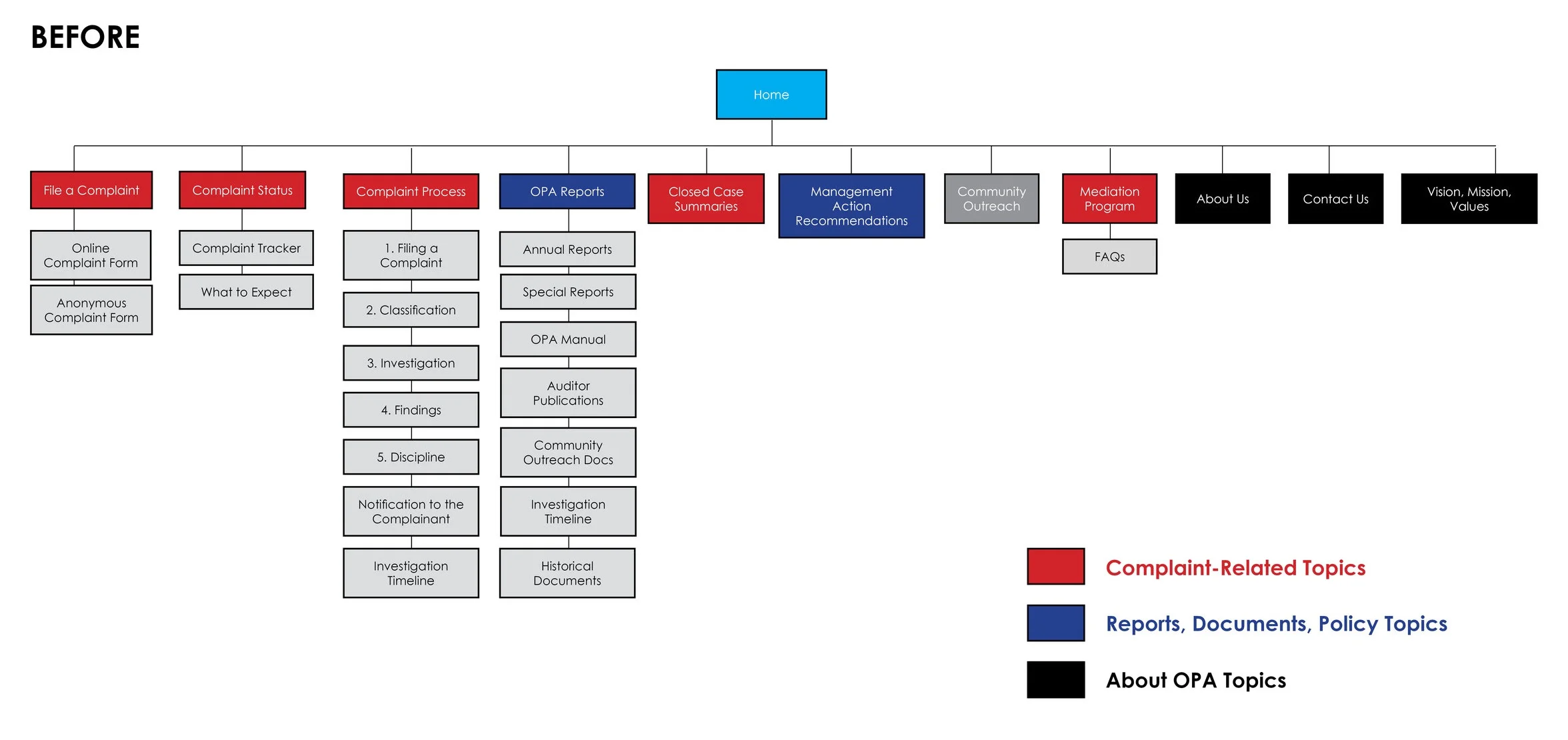 A design, research, and information architecture project to help users understand OPA’s role and services in safeguarding a culture police accountability.